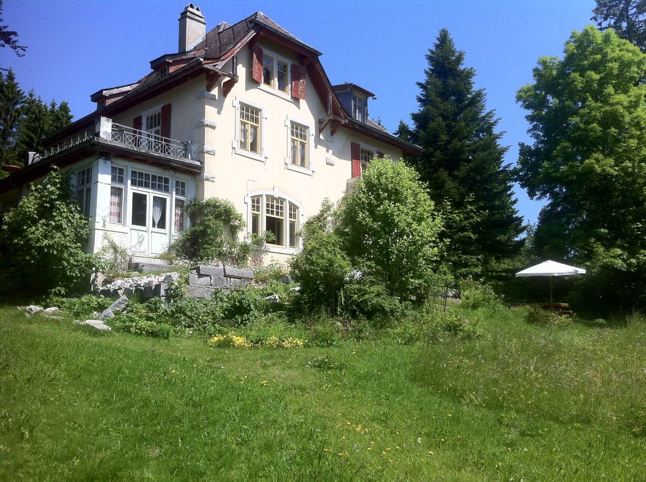 The Décentrale is a property with an old art-nouveau villa, located on Mont-Soleil in the Jura mountains of Switzerland.