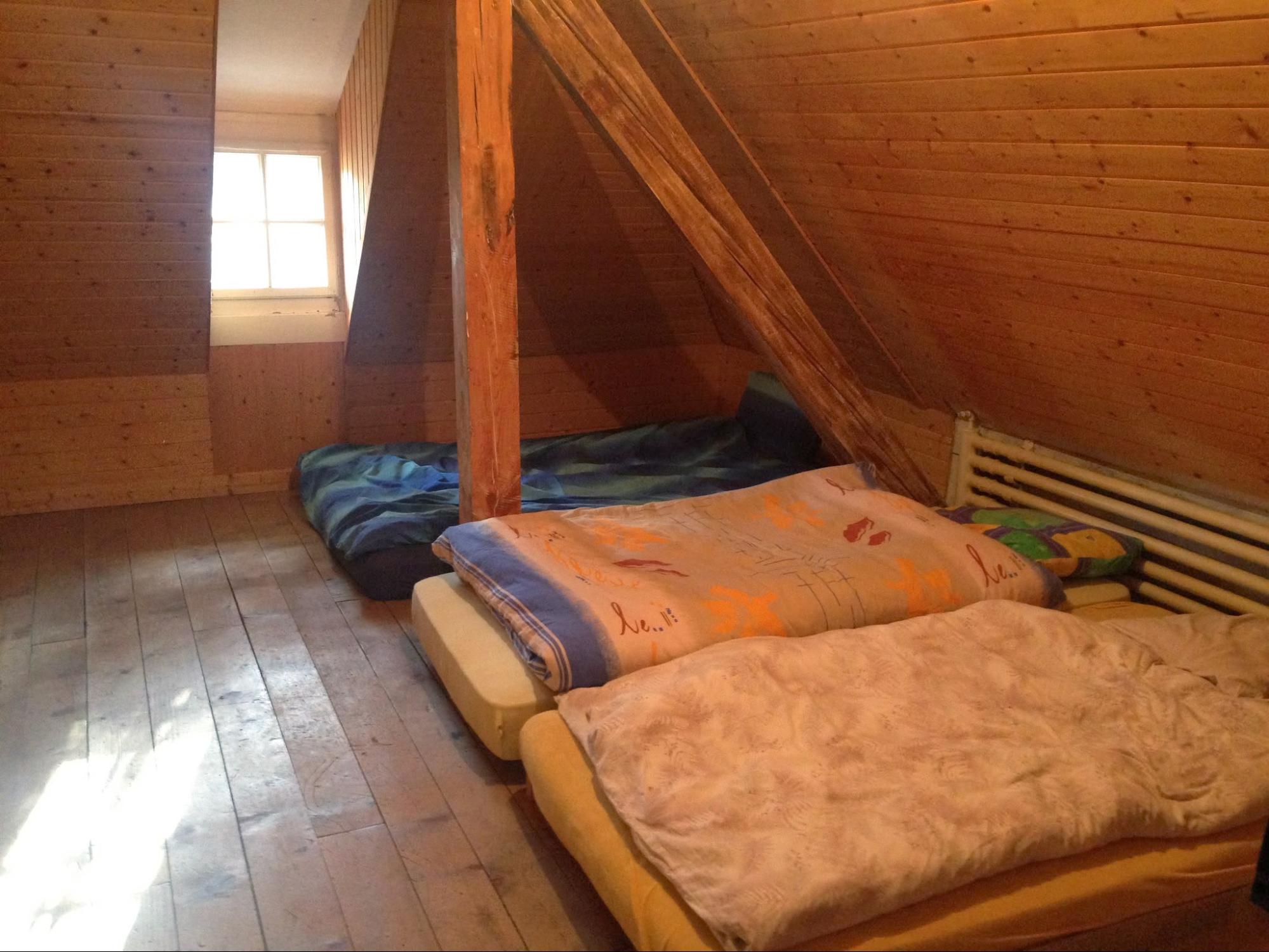People participating in the St-Imier Gatherings and participating on workshops, can sleep over at the Décentrale. The Décentrale has two dormitories, during the summer there is a yurt participants can sleep in and the surrounding park offers additional places for campers and tents.
